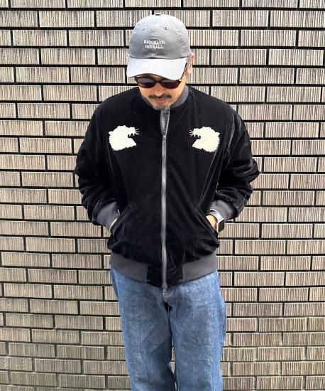 ・表地には、ベロア生地に前後スカジャン風の刺繍を入れています。