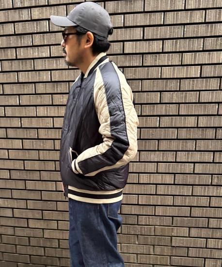 表側は、毛羽のあるベロア素材にスカジャン刺繍を、裏側は、ダイヤキルトダウンジャケットで、気分やコーデに合わせて楽しめるリバーシブル仕様に仕上げました。