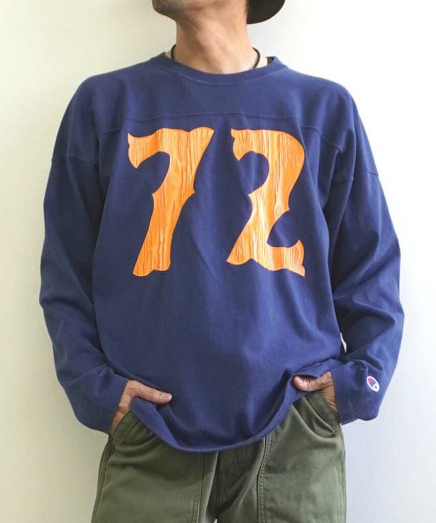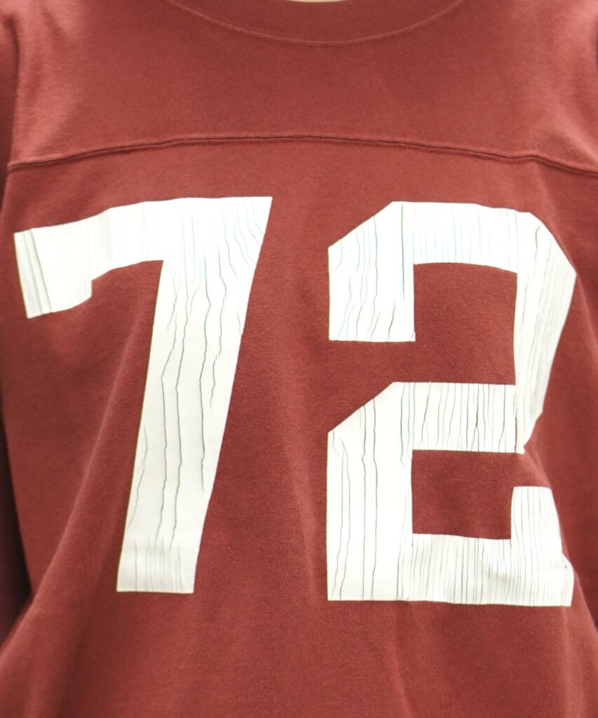 クラッキング加工を施したラバープリントが特徴の 72プリント入りフットボールTシャツ です。