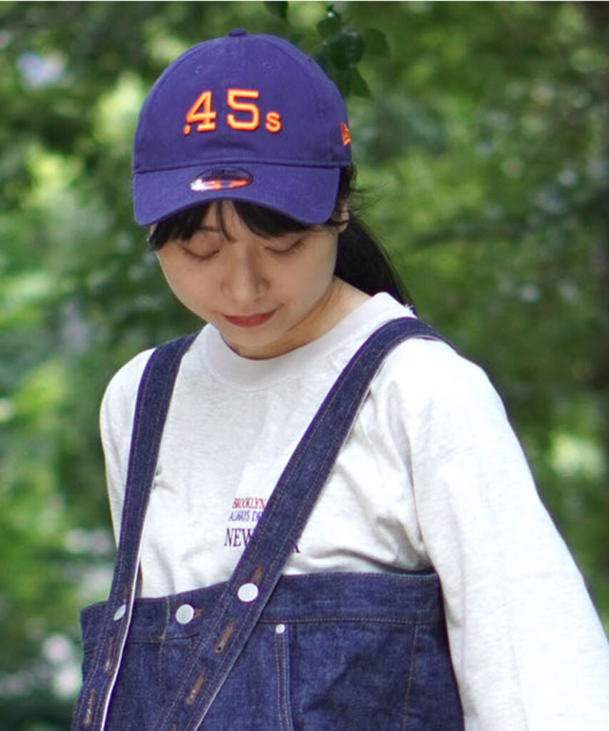 続いては、ニューエラの定番モデル「9TWENTY」から。赤みを帯びたネイビーをベースに、鮮やかなオレンジの刺繍が施されたキャップです。