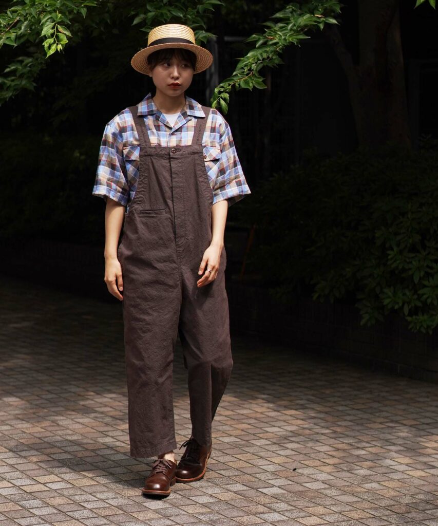 どこか懐かしさを感じる、温かみのあるファーマースタイル。リネンシャツの上にブラウンのオーバーオールを合わせることで、レトロで牧歌的な雰囲気を醸し出します。