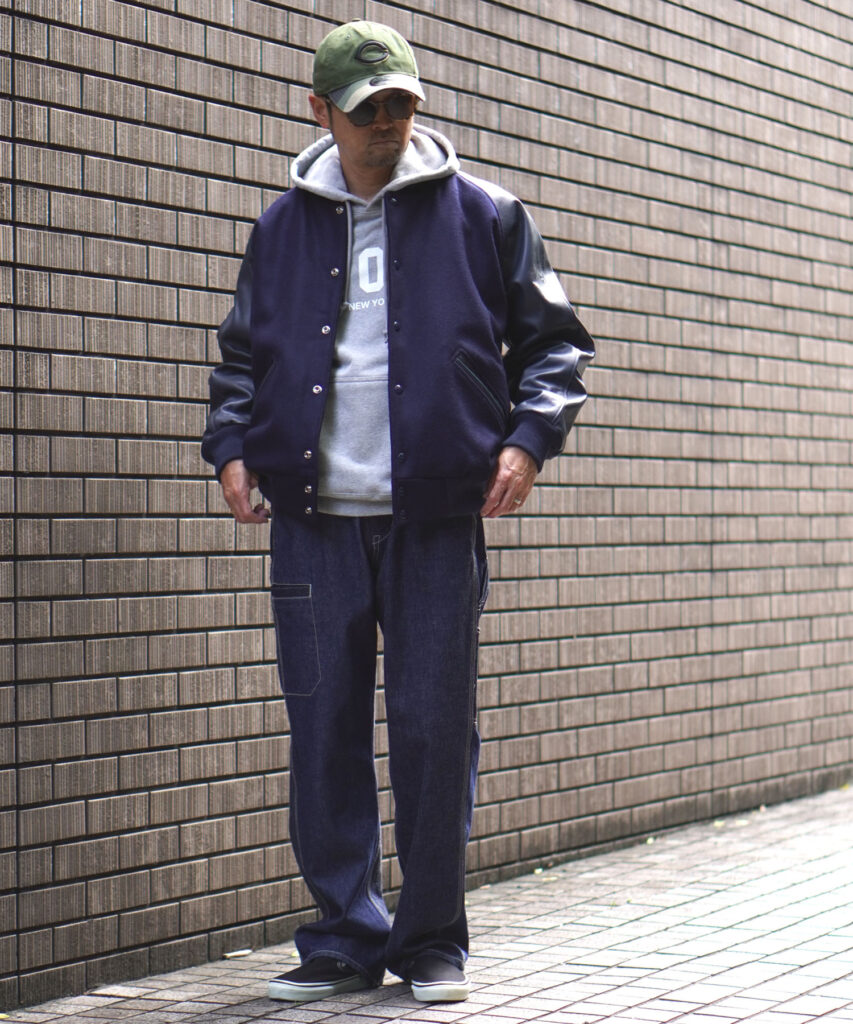 重厚感のあるスタジャンは、大人感を醸し出しています。