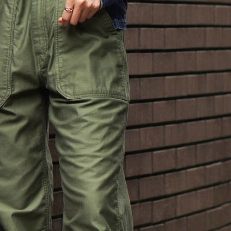 一般的にベイカーパンツといえば“バックサテン”素材が定番。