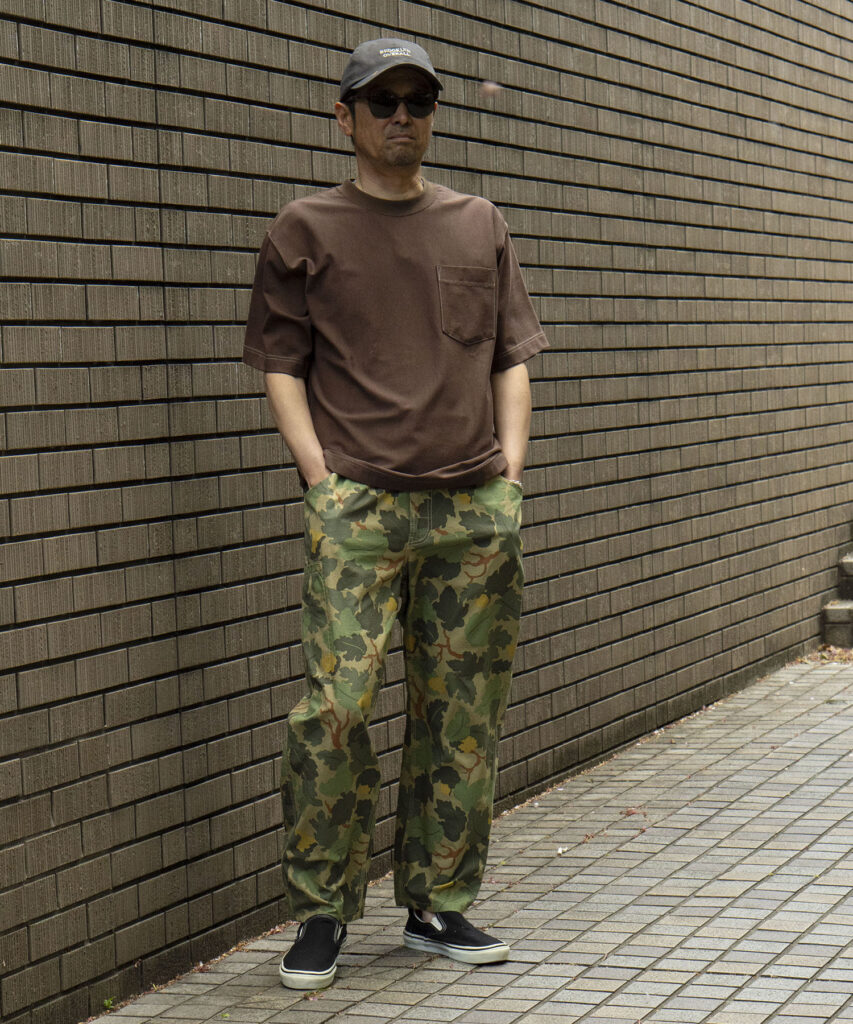 秋らしさを演出するなら、まずは色使い。ダークトーンを取り入れるだけで、同じTシャツでも夏とは違う雰囲気に仕上がります。特におすすめは「ブラウン」。