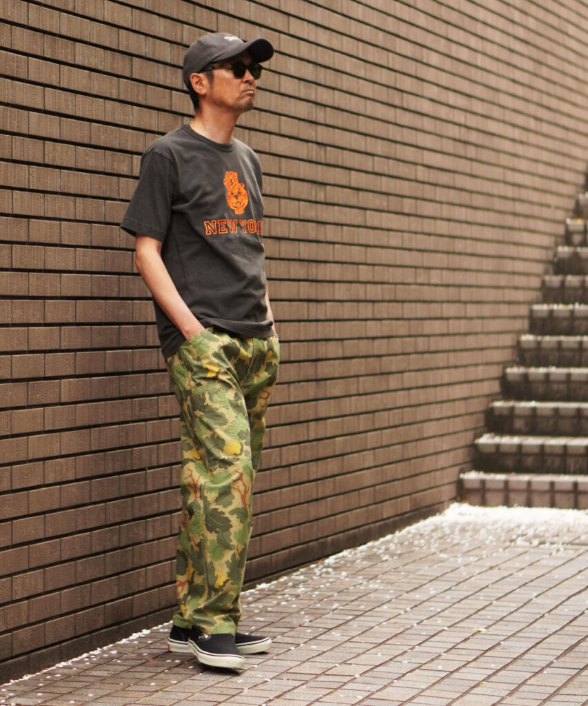 アメリカ製「PROTAG」ボディを使用したブルックリンオーバーオールのオリジナルプリント。プリントは控えめで、同系色のためコーディネートを邪魔しないのが魅力です。