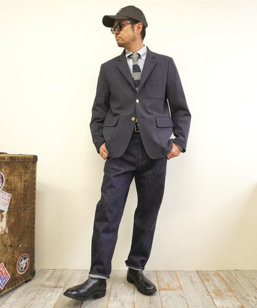 アメトラスタイル:アメトラ王道のネイビージャケットとのコーディネート
